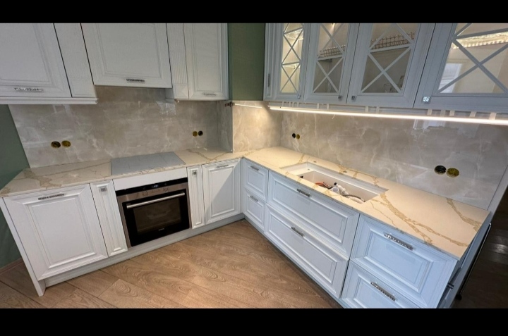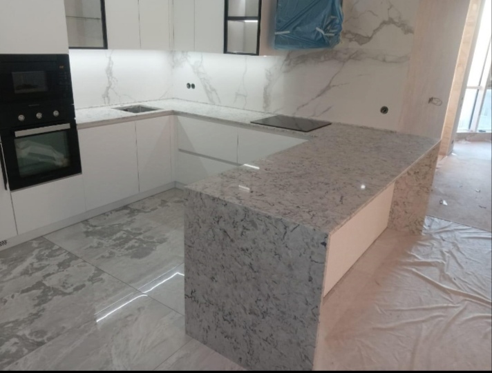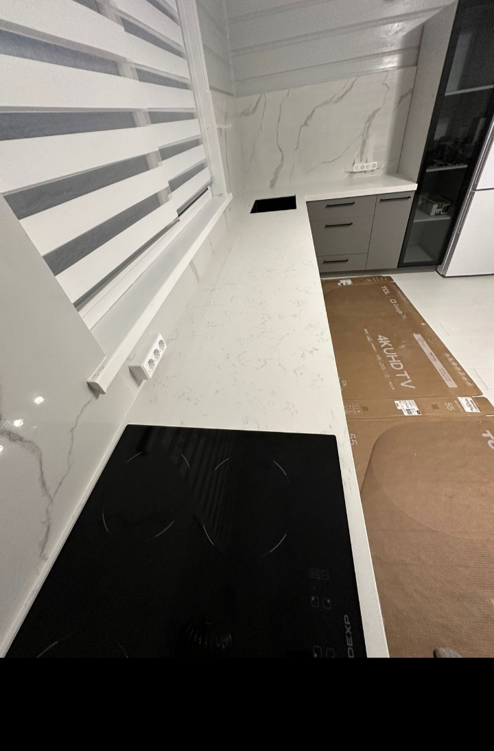 Изготовим из кварцевого агломерата и смонтируем столешницы на кухню и в ванную, подоконники, лестницы. Цены приемлемые!